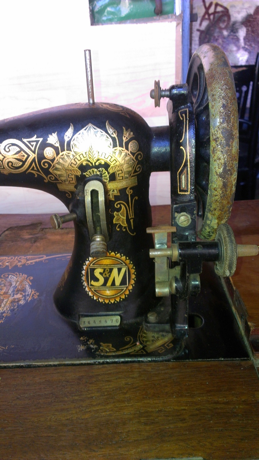 Wir haben nicht so richtig viele Informationen über die ersten Seidel & Naumanns im Internet finden können. Die Seriennummer der Maschine ist 2292297. Basierend auf der Theorie, dass Naumann bei jeder gebauten Maschine hochgezählt hat, anstatt bei jeder neuen Serie neu zu nummerieren, hätte das zeitlich ungefähr in die Produktion der D4 gepasst. Die Maschine im Nähmaschinenverzeichnis hat die 2461634, kam also etwas später. Dazu kommen noch die Dekoelemente, die passend aussehen. Auf der Maschine selbst ist keine Serienbezeichnung wie bei den späteren Serien drauf.